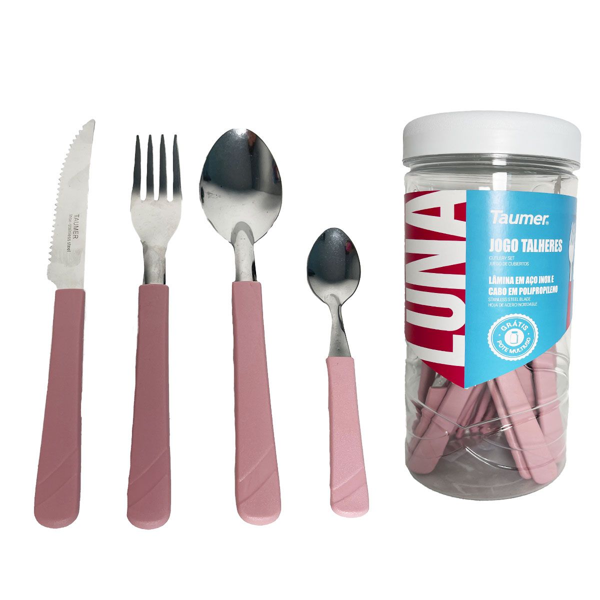 Faqueiro 24 Peças Jogo Talheres Conjunto Inox Pote Multiuso - Rosa