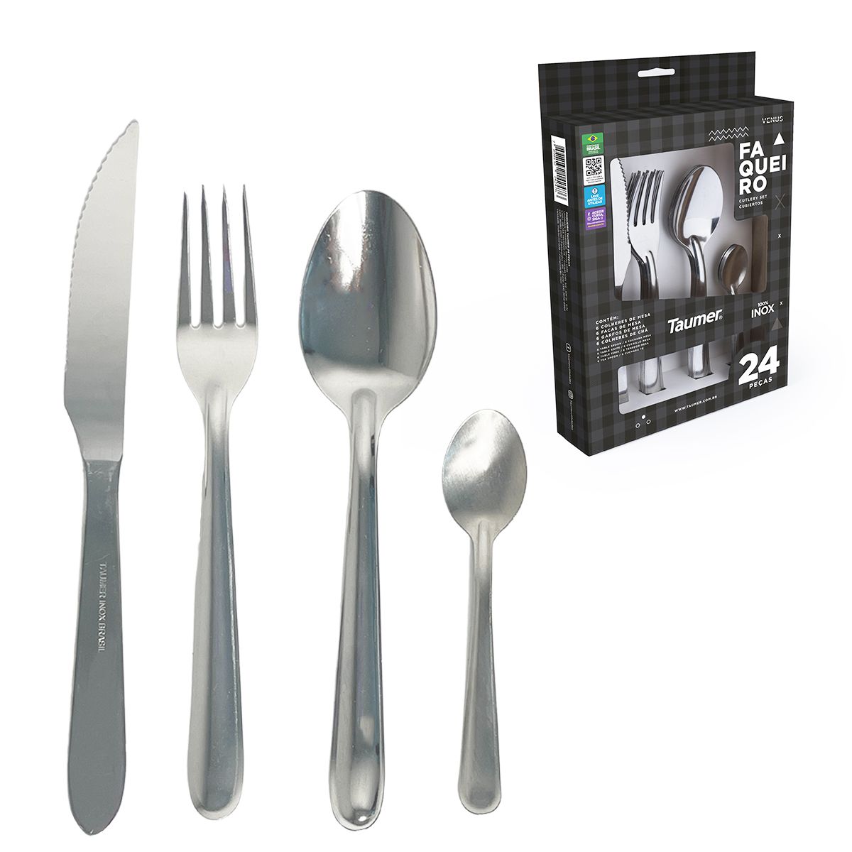 Faqueiro Conjunto Jogo de Talheres 100% Aço Inox 24 peças